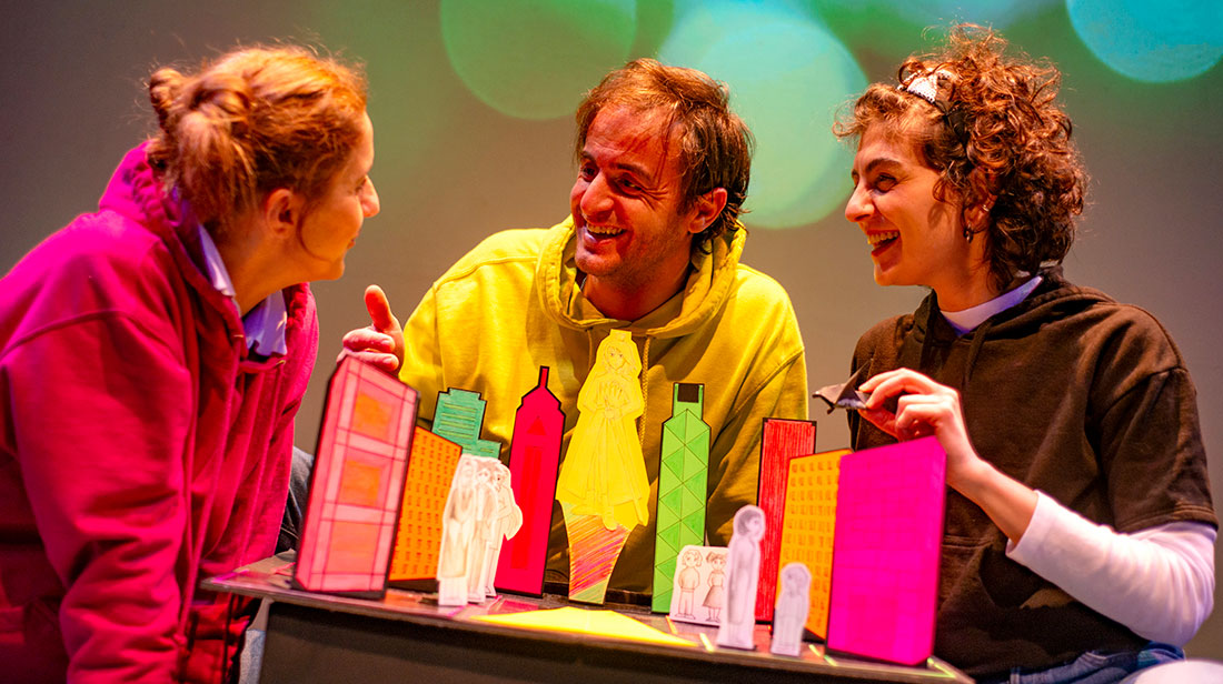 “There is nothing that art cannot express,” Oscar Wilde writes in The Porttrait of Dorian Gray praising art as a place of freedom and transformation, a place of truth that is revealed naturally, without being imposed by didacticism and preaching. With the same belief, we approached The Happy Prince by bringing to the stage the creative process and perspective of three students who undertake to prepare their school assignment on the particular artwork. The children take on roles, play with situations, and bring the story of The Happy Prince to life with humor, imagination, and impulsiveness, incorporating the spirit of their own era. In this way, our approach reflects children’s quests for acceptance of diversity, social coexistence, true love, and happiness in the modern world. Τhrough playing and collaboration children demonstrate Oscar Wilde’s deep belief in the liberating and transformative power of art, far from sermons and moral lessons.